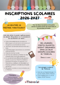 Inscriptions scolaires 2026-2027 : la rentrée se prépare maintenant ! Pour les premières inscriptions (TPS, PS et nouveaux arrivants), dossier à déposer en mairie : Fiche individuelle pré-inscription (1 par enfant) Justificatif de domicile des parents ou tuteurs légaux Copie des pages vaccinations du carnet de santé de l’enfant Copie du livret de famille Renseignements auprès du secrétariat : mairie@thereval.fr / 02.33.05.05.59 LA CHAPELLE ENJUGER 56 enfants 1 classe maternelle et 2 classes élémentaires Tél : 02.33.55.64.24 Courriel : ce.0501086J@ac-caen.fr HEBECREVON 84 enfants 2 classes maternelles 3 classes élémentaires Tél : 09.72.98.60.66 Courriel : ce.0501415S@ac-caen.fr
